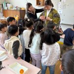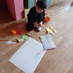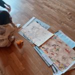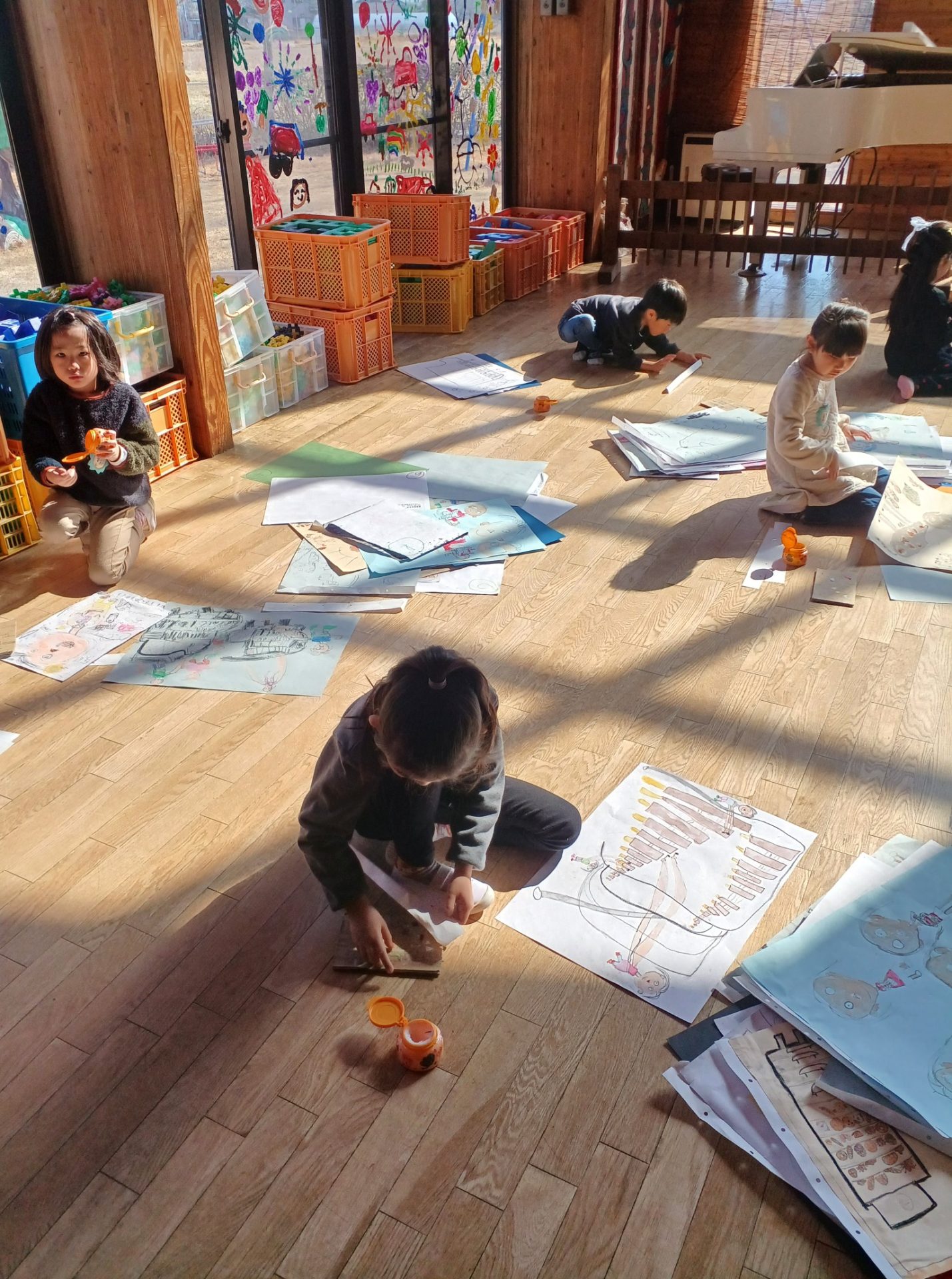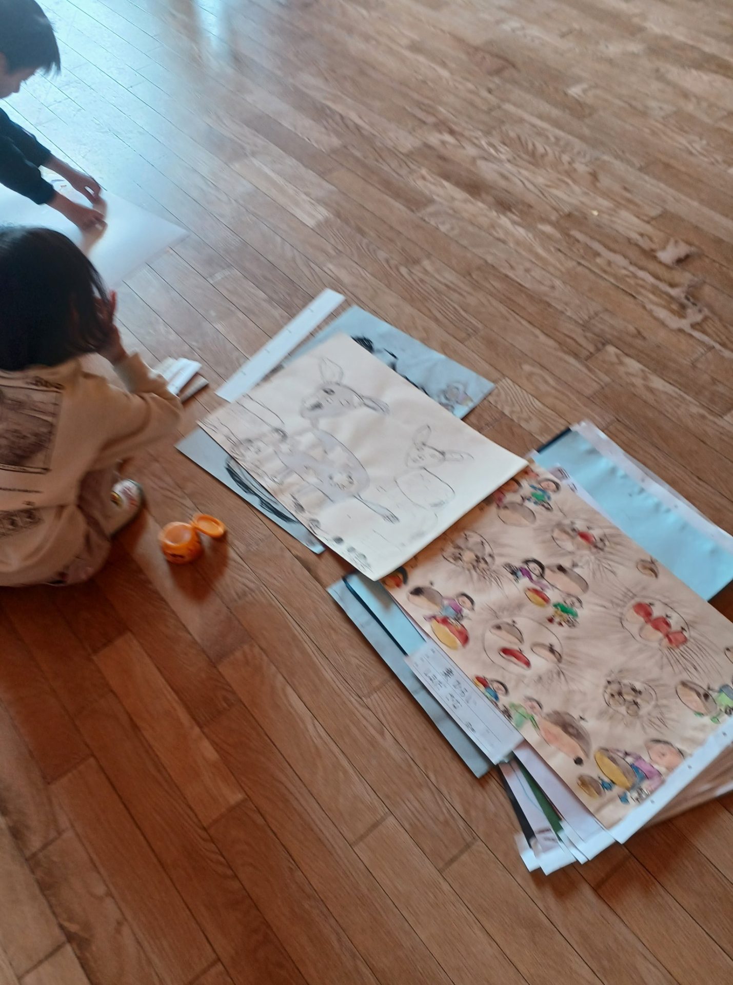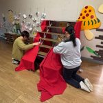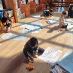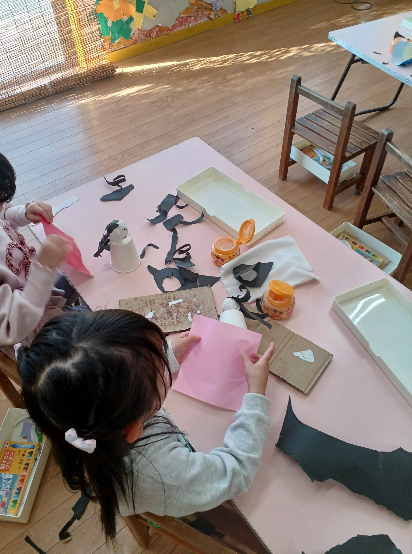 烏帽子の紐を結んで、頭に烏帽子をのせます。