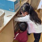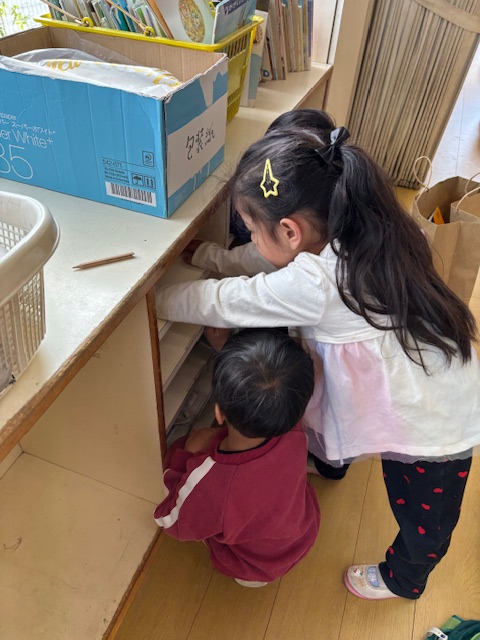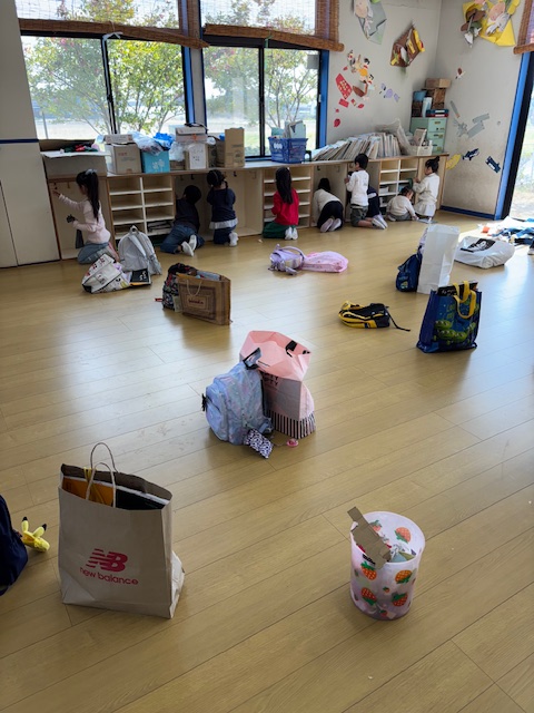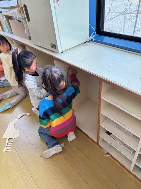 その後、教室のお道具入れの名前をはがしたり、綺麗に拭いたりしました。