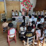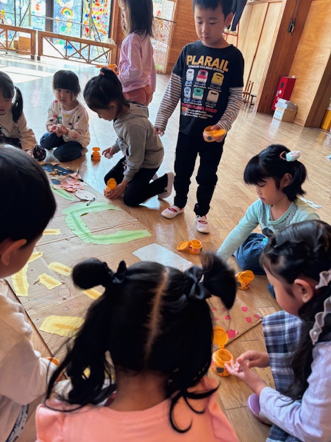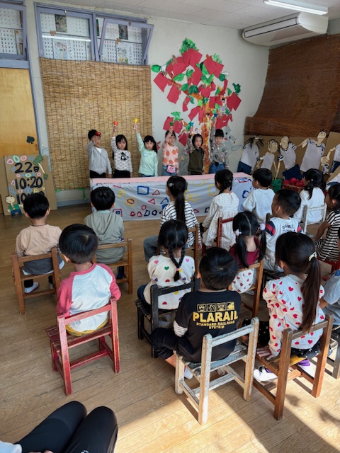 先ほど、ここで、子供たちは、ポプコーンを食べてました。