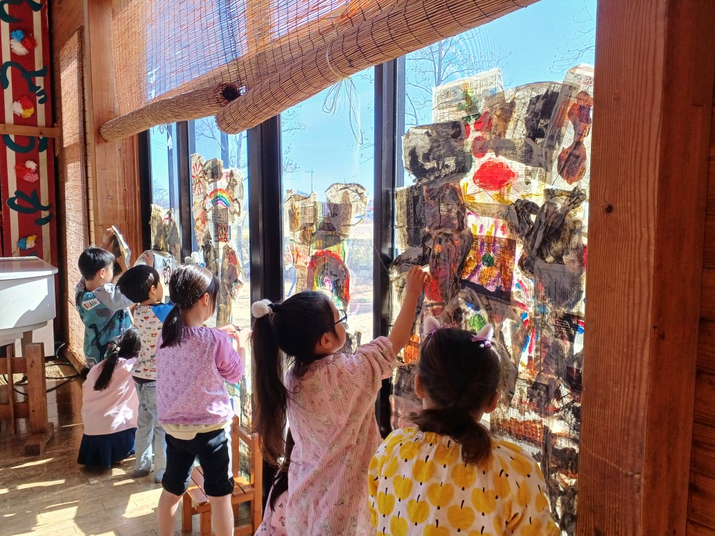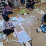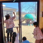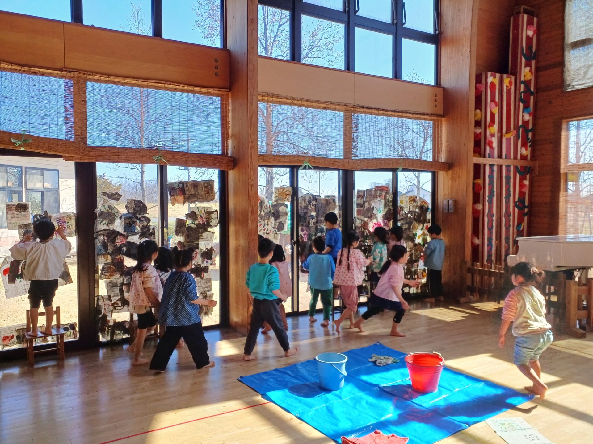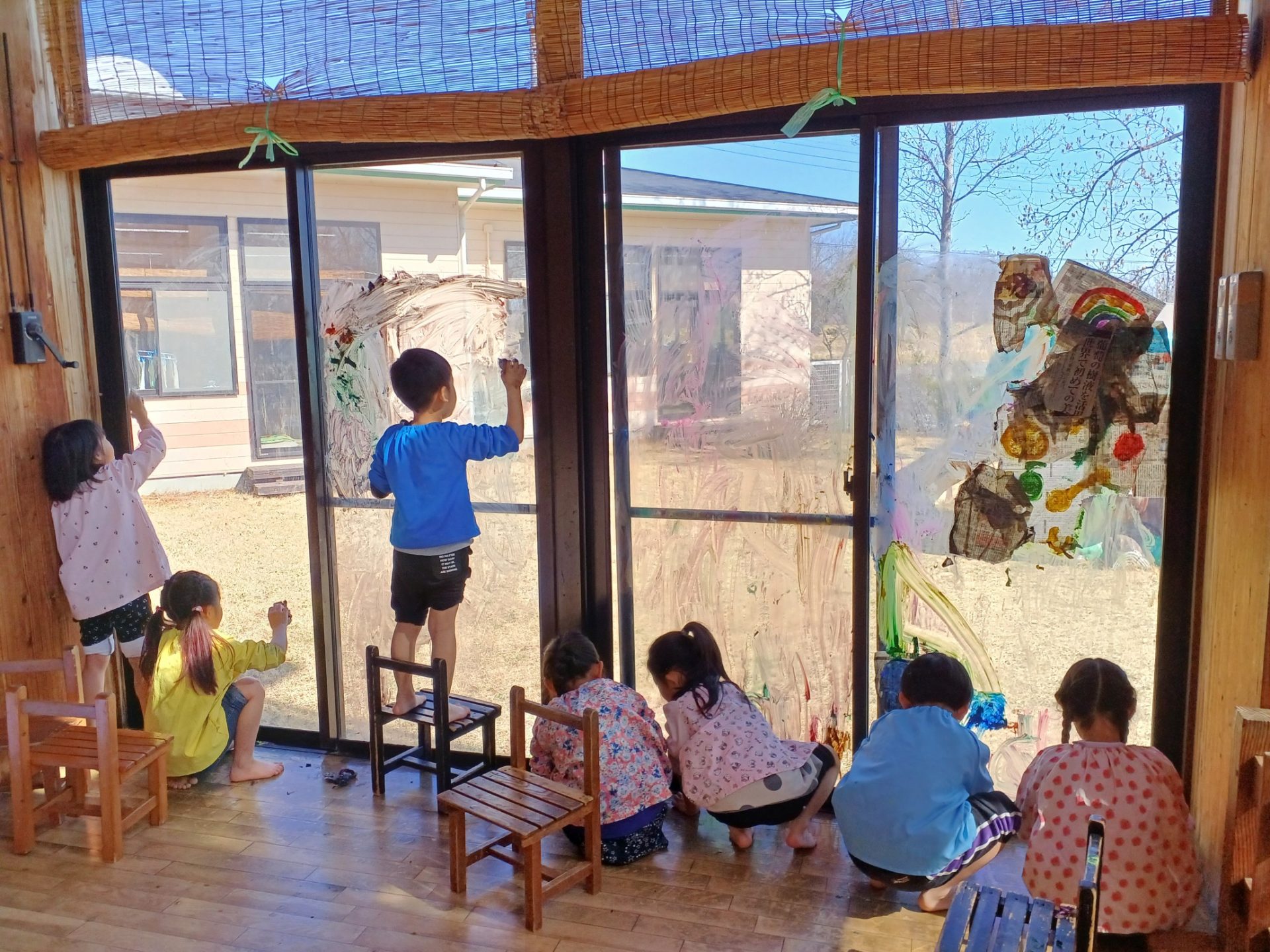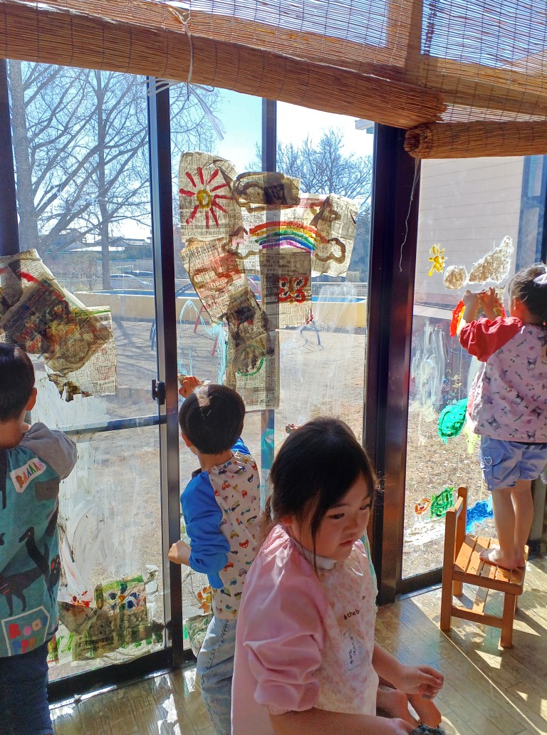 きょう、5歳児さんは、昨日の続き 窓ガラスを消すことから、スタートです。