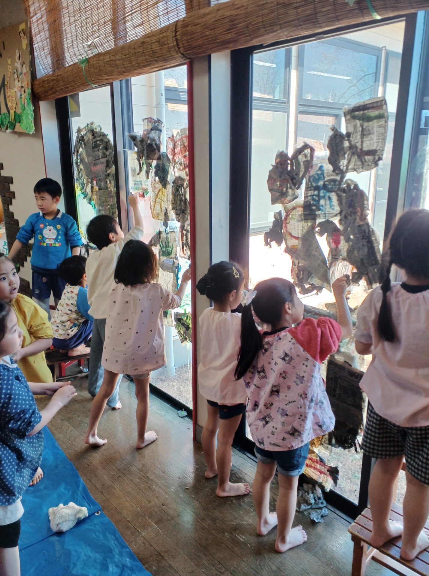 濡れた新聞紙を、はりつけて。