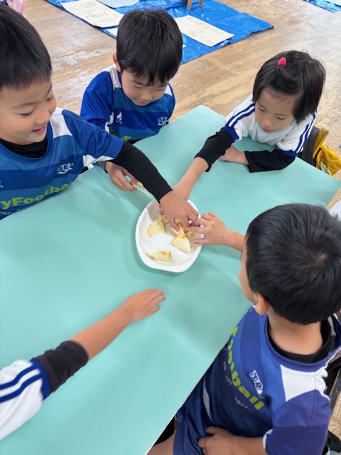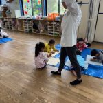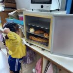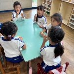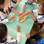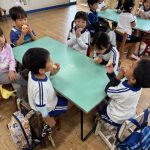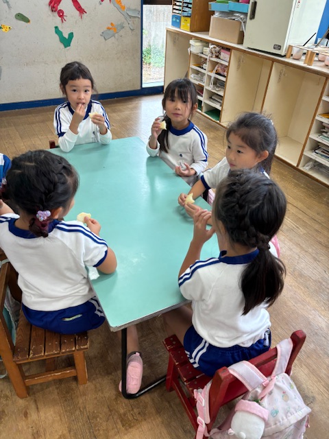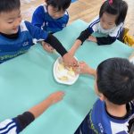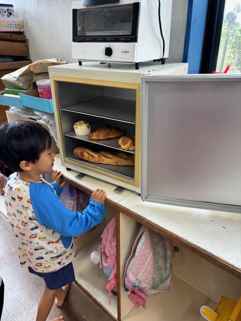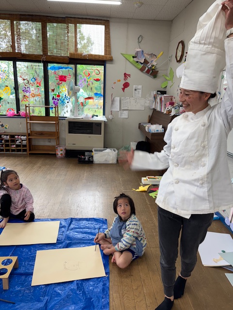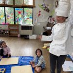 火曜日 さて、今日は? 4歳児さんの教室に 白い服を着た人がいます。 パン屋さん? 先生が パン屋さんになりました。 そして パン屋さんの話を聞きました。 パン屋さんを 描きました。 そして、みんなで、 パンを食べました。 美味しいパンでした。 きょうは 体操もしました。 久し振りの体操。 みんな、楽しそうでした。 こんな感じの今日でした。 « さて、きょうは?