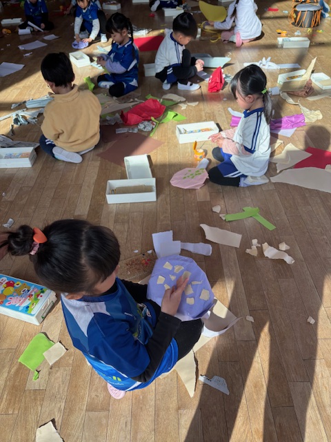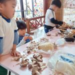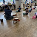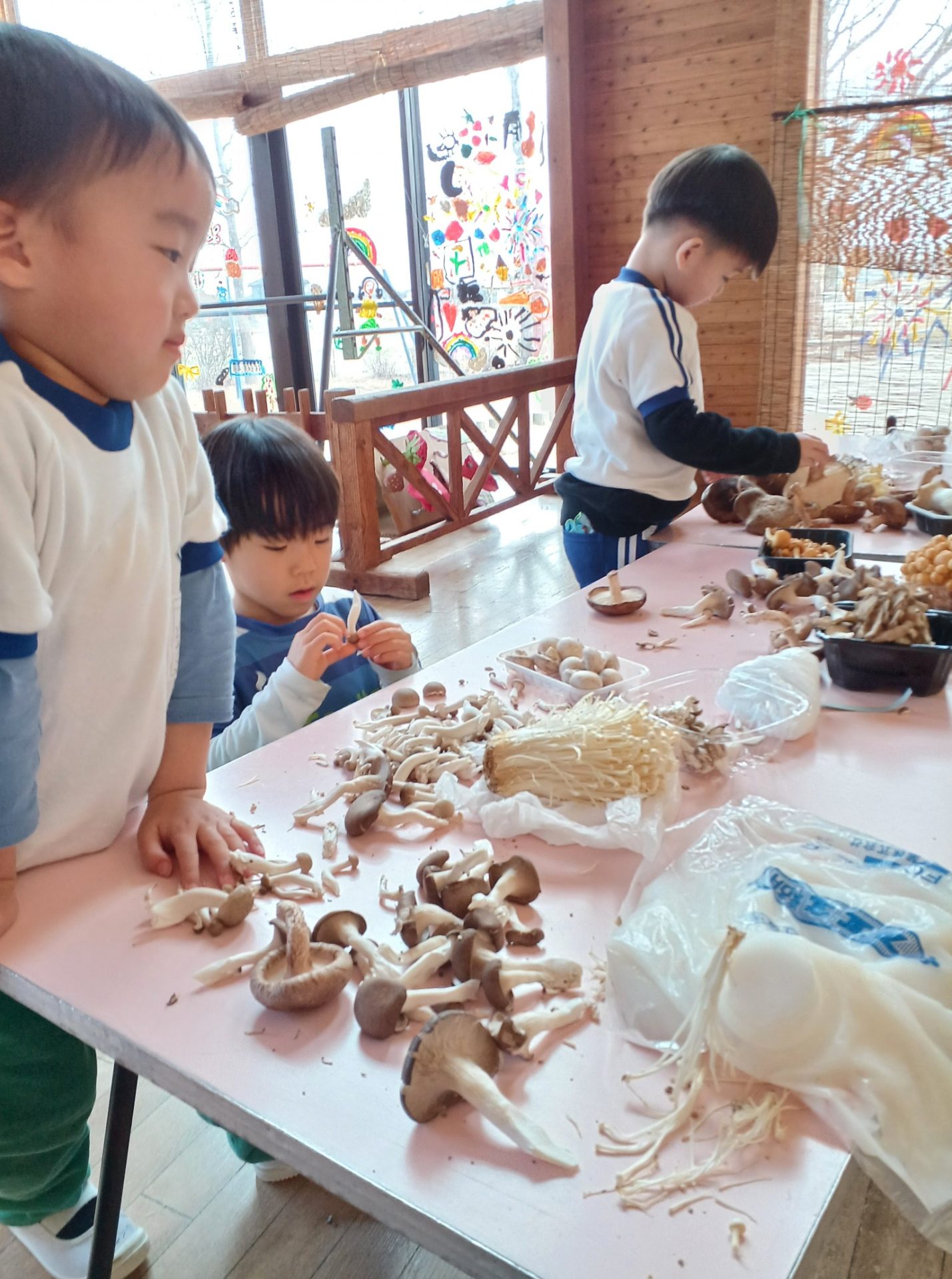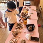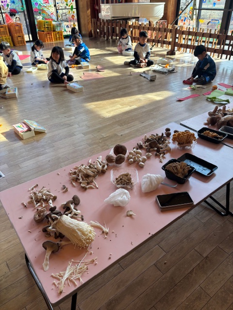 火曜日 さて、今日は? 4歳児さん、 5歳児さん 一諸に、何か見ています。 キノコ です。 今日は キノコを作ります。 色々、カラフルなキノコ 作ります。 今日は 太鼓がありました。 大分 上手になってきましたよ。 こんな感じの今日でした。 « 月曜日