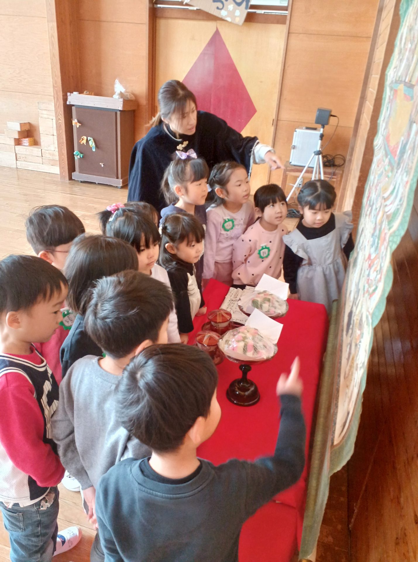 金曜日 さて、今日は? 涅槃会 をしました。 涅槃会 は お釈迦様のお亡くなりになった日です。 最初に、 献灯献花をしました。 献灯献花は、お釈迦様に お花、お茶、あげる儀式です。 その後、 みんんで、掛け軸を見ました。 この掛け軸は、毎年、この日に出されます。 今回 検討献花 をしたのは、 私たちです。 これで、今年度の検討献花のある行事は、終わりました。 気が付くと、2月半ばとなりました。 « 木曜日