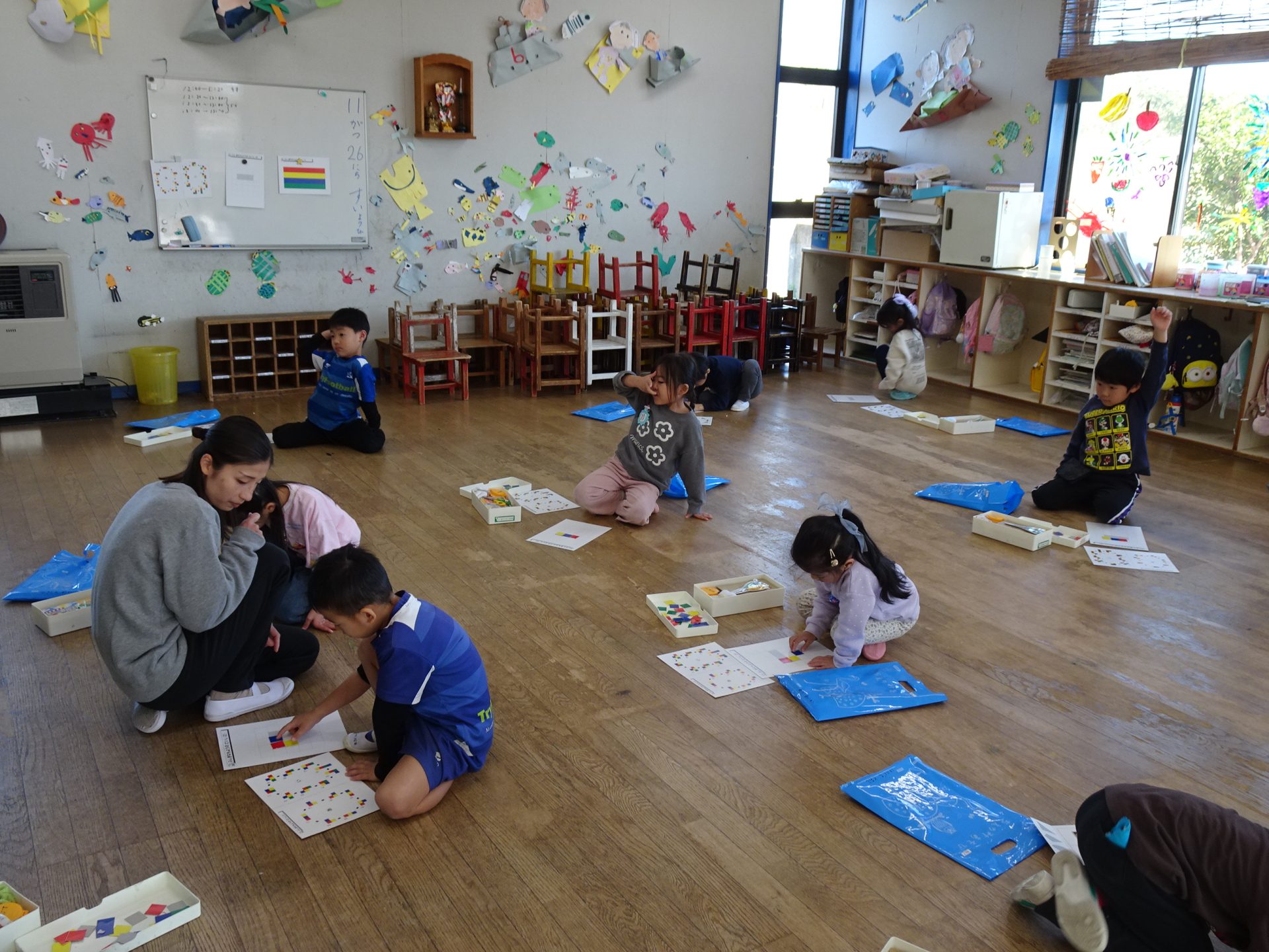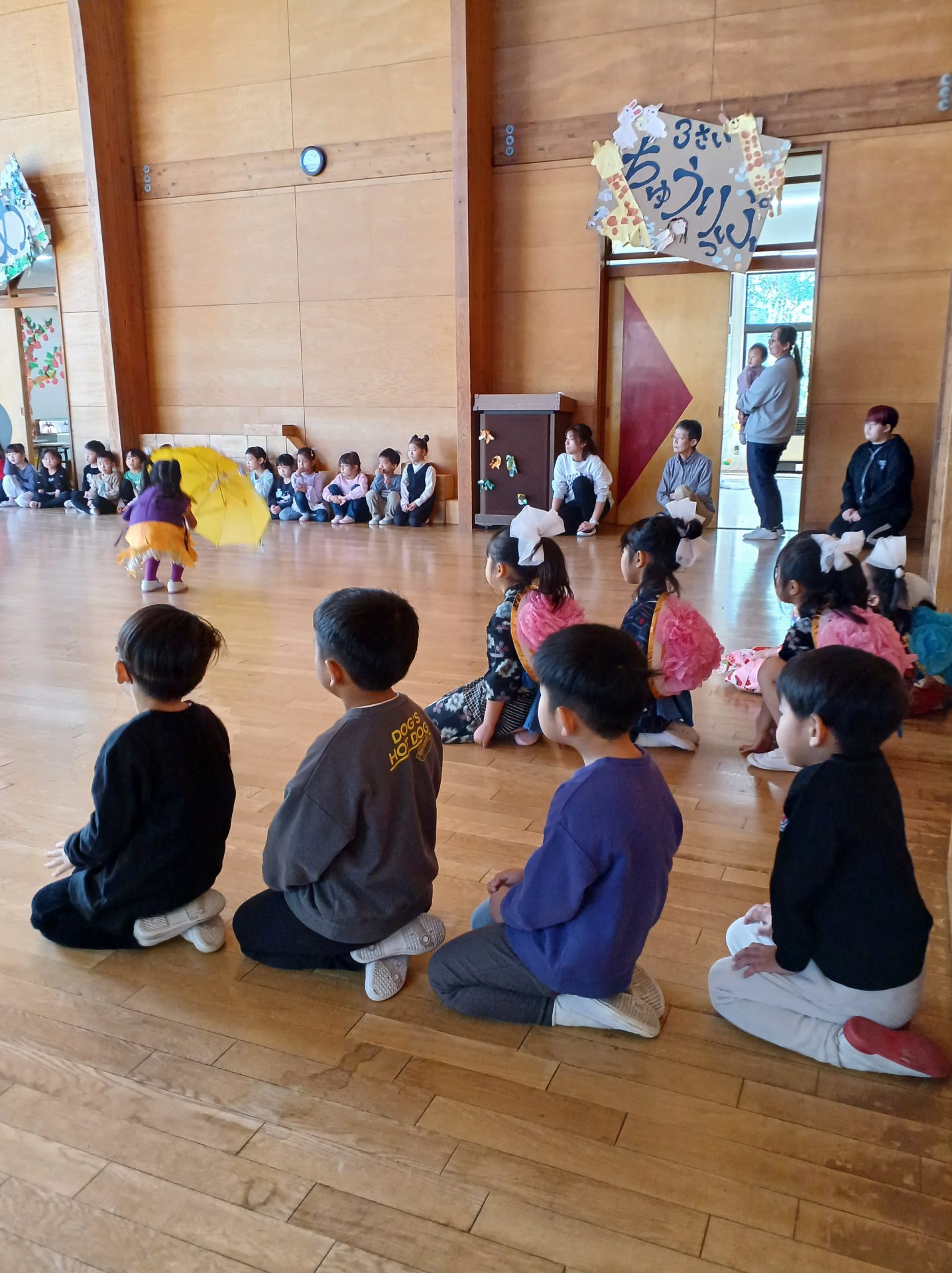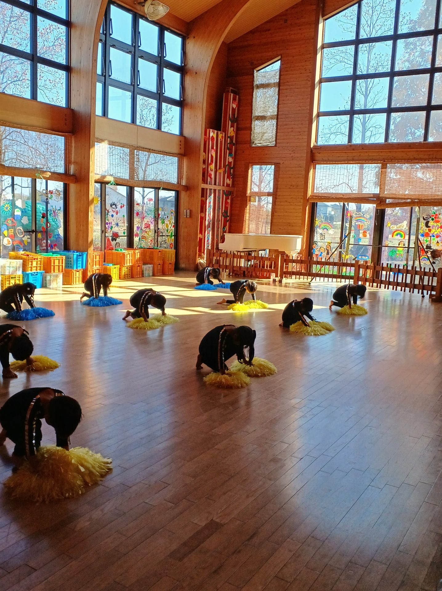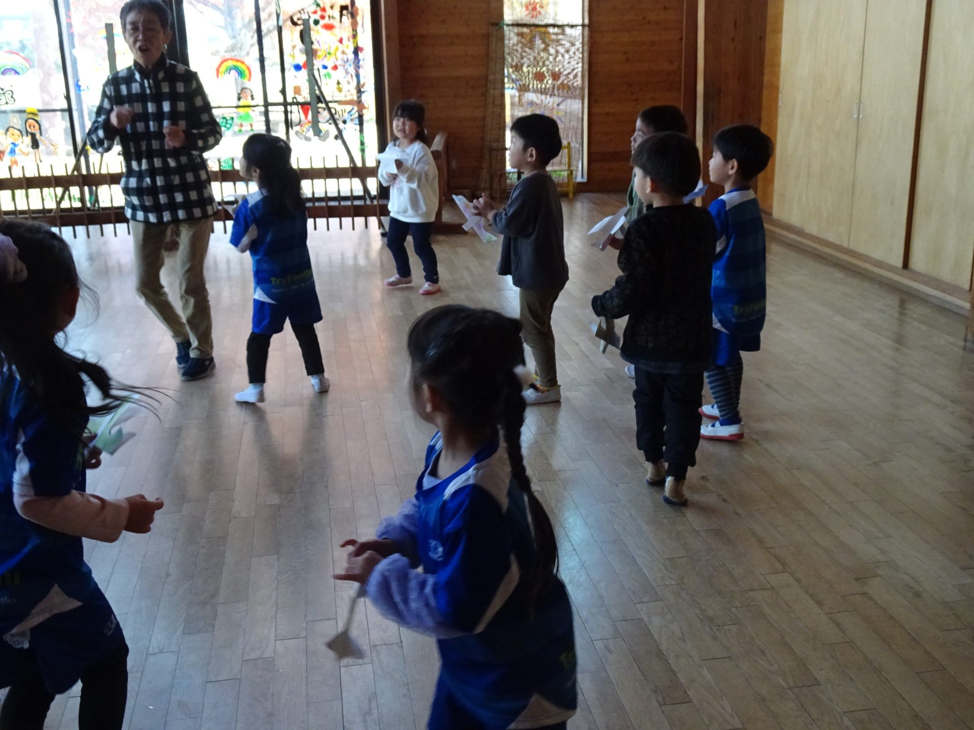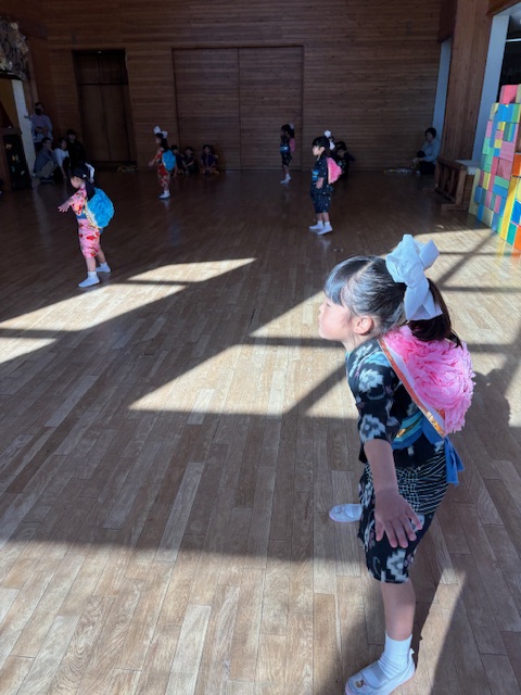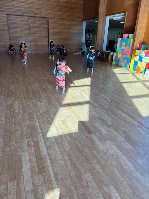 リハーサルが近くなり リハーサルは17日「月」そして、明日14日は県民の日でお休み。ということで、 リハーサル前の最後の日でした。 これは、4歳児さん 楽しそうに 踊ってます。 5歳児さんは 舞踏劇の時の 自己紹介の練習をしました。 さくら さくら の練習 越後獅子 の練習も。 子供たちがつけている太鼓は 喝鼓 かっこ と言います。自分で作りました。 こんな感じの今日でした。 いよいよ 17日が リハーサル です。 欠席者がなく、全員、リハーサルができることを祈る今です。