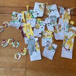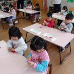 水曜日 さて、今日は? 4歳児さんは 作った動物を、画用紙につけました。 これは、カレンダーになります。 5歳児さんも、 先週、作った 昆虫に、模様を付けました。 これも、カレンダーになります。 5歳児さんは クリスマスツリーも、作りました。